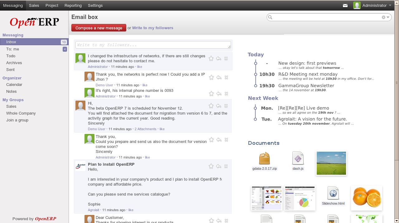OpenERP 7.0 был нашим первым шагом, для того чтобы сдвинуть с мертвой точки электронную почту.